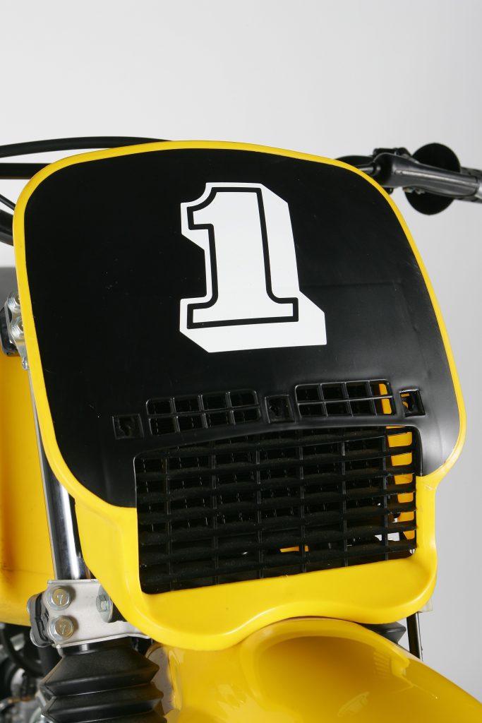 The highly-place single radiator in the YZ250 was covered by this uniquely styled and vented number plate. Photo Credit: Stephan LeGrand