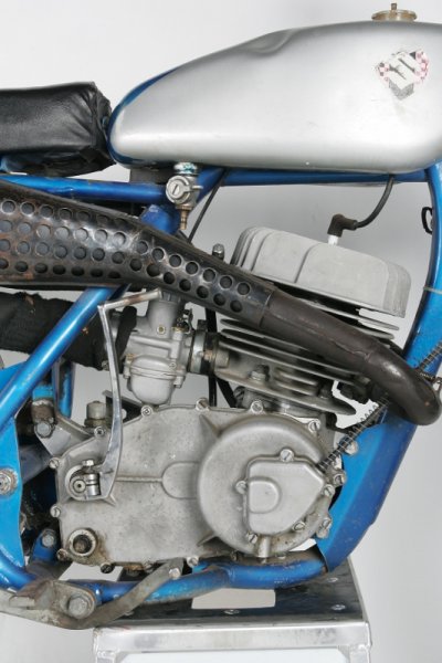 | A pristine TM250 like this one can cost a small fortune. The silver and blue paint scheme was a trademark of Suzuki’s race bikes in the early ’60s. There is little denying that the bikes looked a lot better than they performed. |