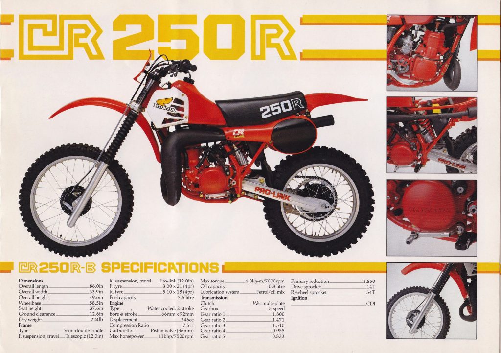The all-new ’81 CR250R certainly looked impressive on the spec sheet. Photo Credit : Honda