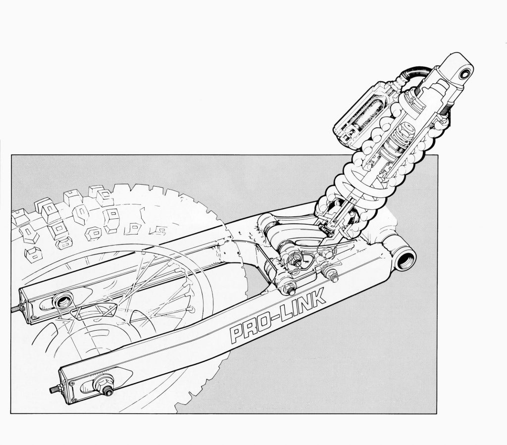 The introduction of the Pro-Link rear suspension was big news for ’81. The switch did improve ergonomics, but in terms of actual performance, it was no better than some of the dual shock set-ups still on the market. When compared to Suzuki’s revolutionary new Full-Floater system, it was no contest. Photo Credit: Stephan LeGrand