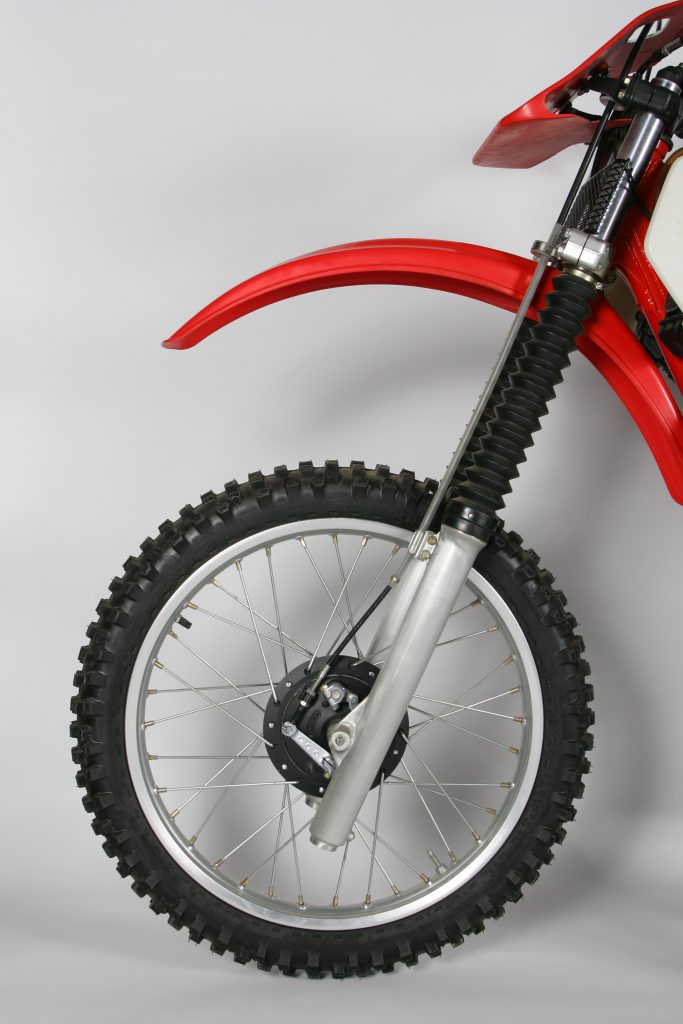 After nearly a decade of terrible forks, Honda went with the bold decision to switch to Kayaba suspension on the all-new CR. Amazingly, the 41mm Kayabas performed no better than the awful Showas had (this in spite of the fact that the same Kayaba forks performed brilliantly on ’81 RM). The set up was all wrong, with overly soft springs and harsh damping. Dirt Bike Magazine likened their performance to a set of pogo sticks. Photo Credit: Stephan LeGrand