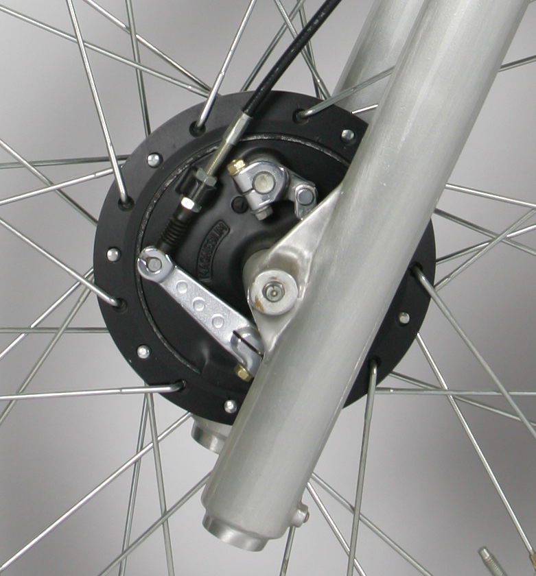 This was the best brake in motocross in 1981. The dual leading shoe design used a set of linkages to push the shoes apart from both sides. This was a major advance over the single action drum brakes common up to this point. The reign of the dual-leading shoe would be short-lived, as discs would supplant them within a few years.