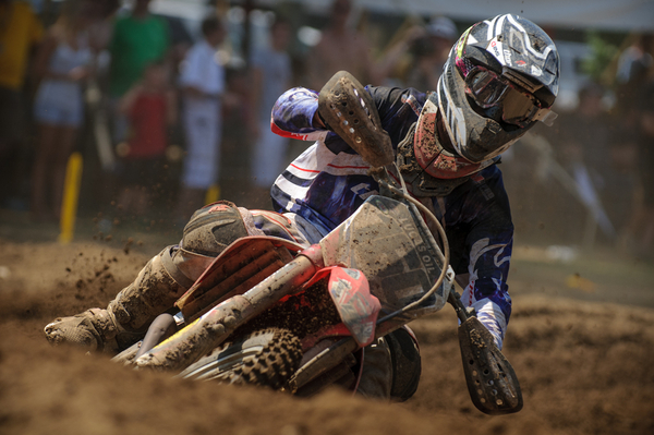 Eli Tomac has made me look a little silly since his High Point trouncing of the field coming from the back of the pack when I called him as the “man amongst boys” of the MX2 class. Eli hasn’t pulled off another performance like that since. Don’t get me wrong, he’s been strong but at High Point, Eli was “Baggett-impressive”. This weekend you could see that Eli was not interested in becoming the latest racer for Baggett to make look silly while passing for the lead. In moto one, Eli got passed in just such a way and it was clear that little lesson was fresh in Eli’s head when Baggett went for the pass again in moto two. Although Baggett was able to again make the pass stick, Eli was feverishly trying to latch on to Blake’s rear fender and apply pressure. It worked. In the wake of the Millville MX2 race, all the talk seems to be about Blake’s amazing charge from the back again and the stand-up pass on Barcia but if you’re any of his competitors, trust me, the in-truck discussions are that there may have been a crack found in his armor. It may be a bit of a gamble because it’s clear, Blake’s speed is a step above everyone else in the class but if you can ride that razor edge of control on Blake’s fender long enough, the pressure may just force him beyond his comfort zone too and leave him on the deck. As I said, it’s a gamble because in doing so, you are also putting your own fate at risk but if you want to beat Blake, it may just be the best chance you have.