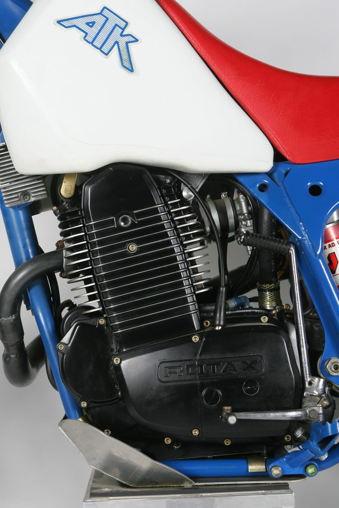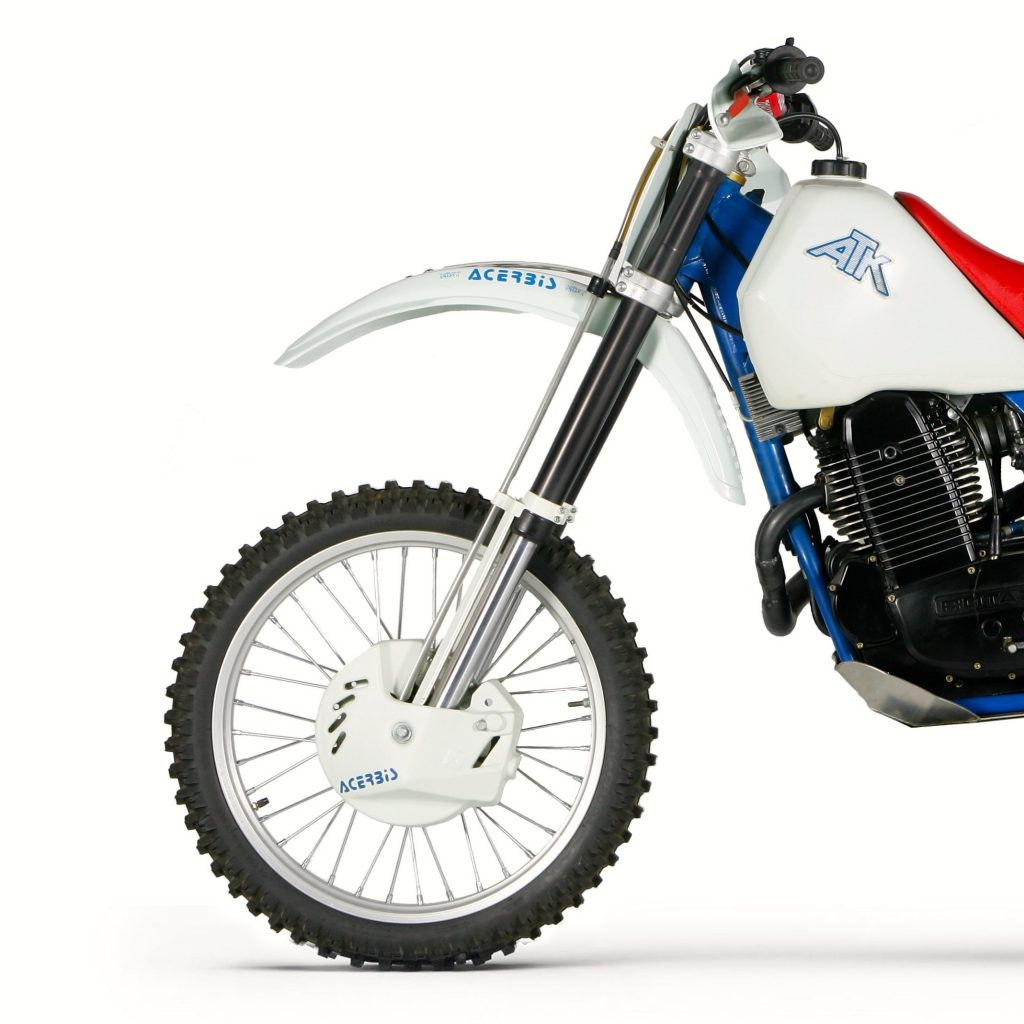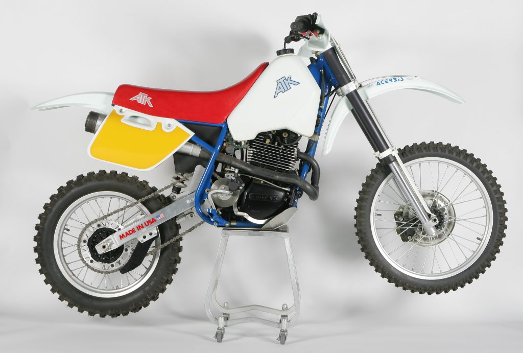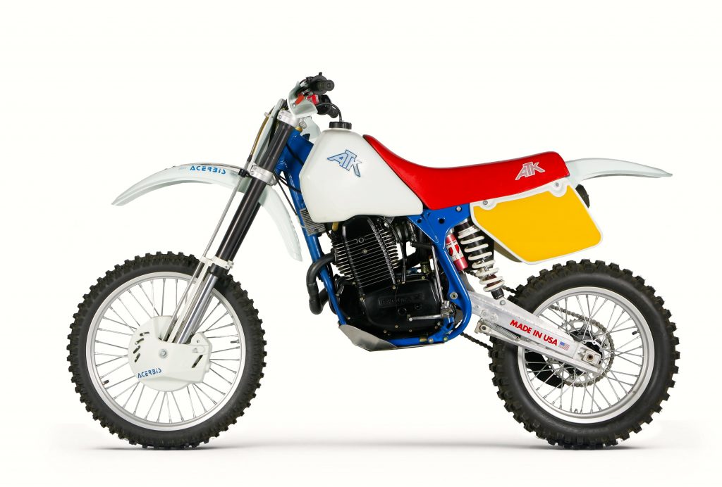 Introduced in 1984, the original ATK560 was considered quite revolutionary for its time. Using a thundering Rotax motor, premium White Power suspension, and loads of innovation, the ATK was a unique machine, for unique tastes. Photo Credit: ATK