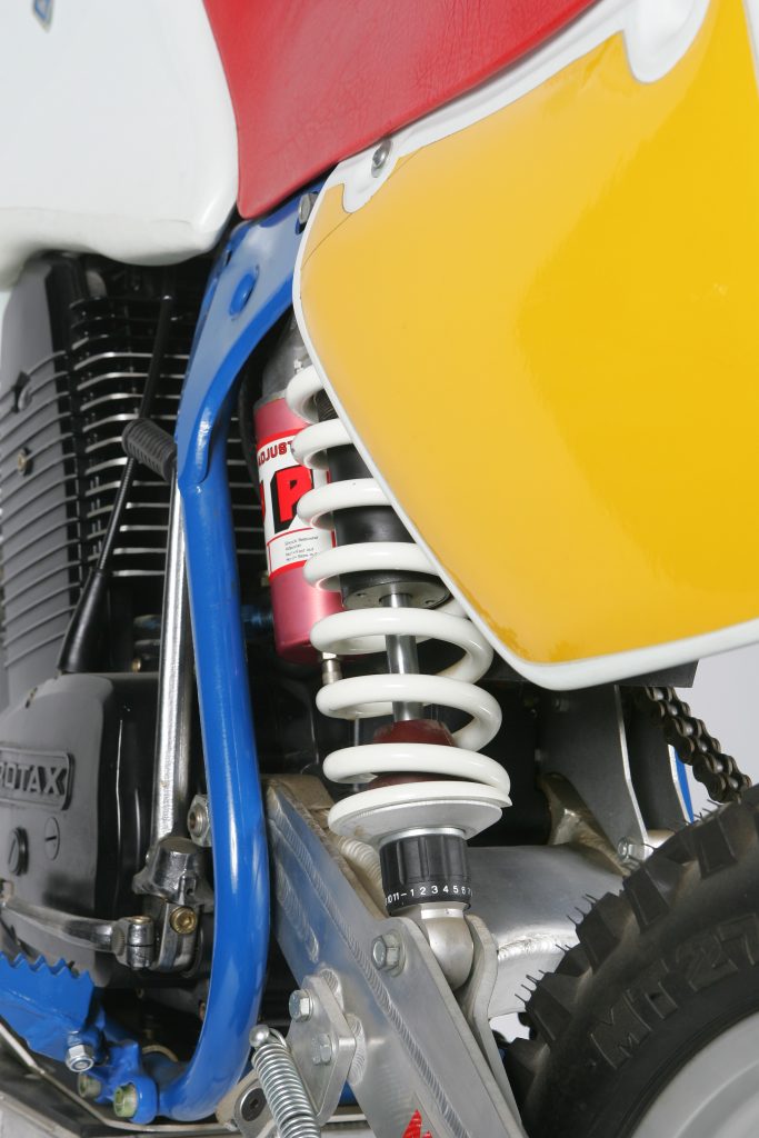 Instead of designing their own engine from scratch, ATK turned to Rotax to provide the power for their motorcycles. The Austrian built motors were heavy and decidedly low tech, but claw-hammer reliable and rocket-ship fast. This 562cc thumper pulled hard from the first crack of the throttle and kept on pulling till the rev limiter kicked in. Compared to its two-stokes contemporaries of the time, it was both faster and easier to ride. When you added in the electric start option, you had the ultimate open class power plant of 1989. Photo Credit: Stephan LeGrand