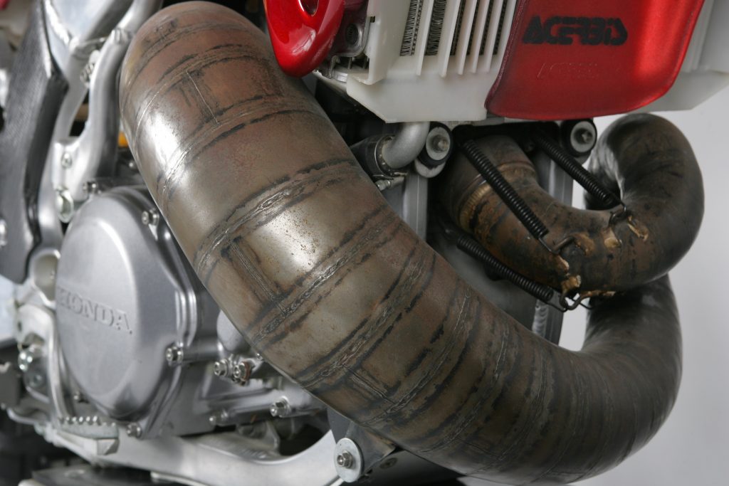 Pro Circuit built this super trick custom cone pipe for Greg’s project. It was designed to mirror the performance of the PC pipes used by Team Honda in the early nineties. Photo Credit: Stephan LeGrand