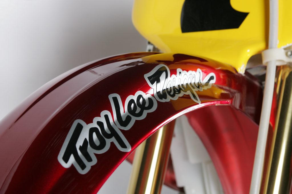 Troy Lee Designs did the custom candy apple red paint that graced Greg’s CR500 project bike. Photo Credit: Stephan LeGrand