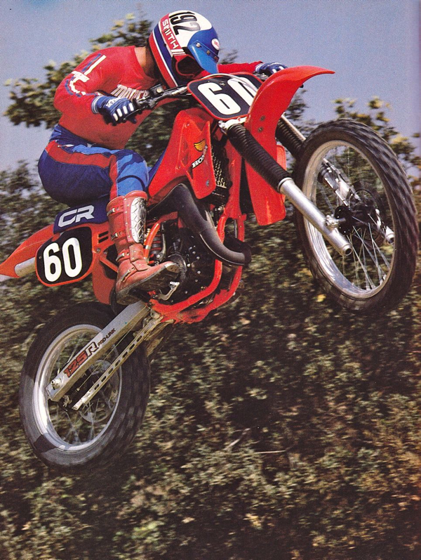 | With a light feel and excellent ergonomics, the CR125 was one of the most comfortable bikes in the class in 1984. Photo Credit: Motocross Action |