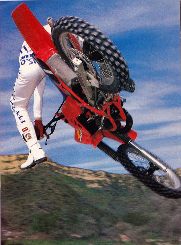 The CR125R was an excellent flyer in 1984. 125 National champion Johnny O’Mara demonstrates. Photo Credit: Motocross Action