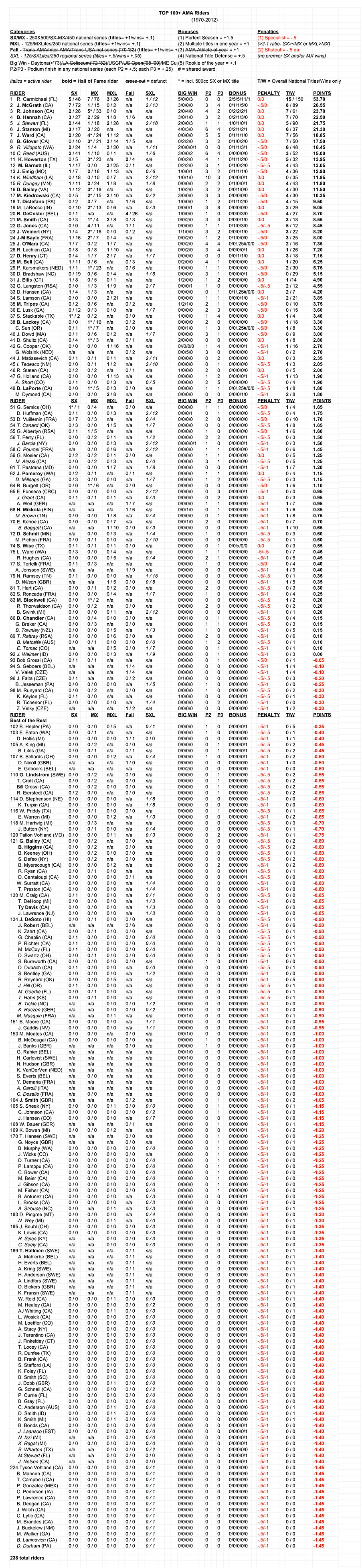 ALL-TIME AMA SUPERCROSS/MOTOCROSS RANKING SYSTEM