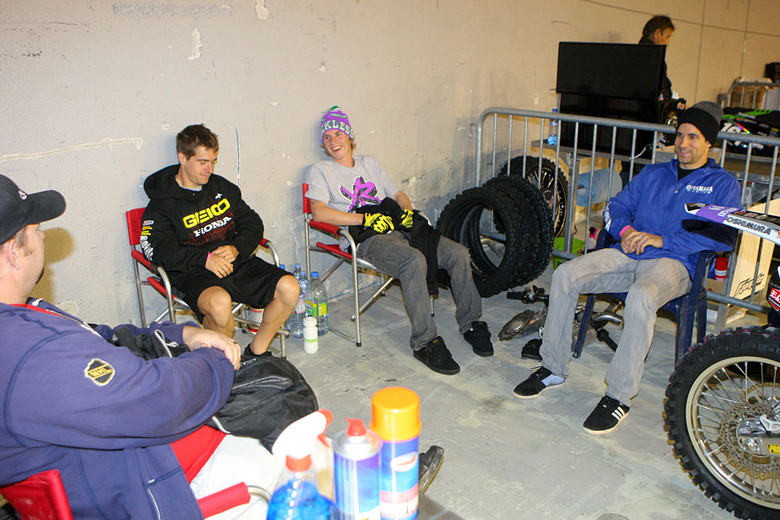 This is the best part of Bercy, just hanging out and telling stories and jokes. The Americans that went over (Brayton, Hahn, Weimer, Tomac, Chisholm) were some of the smallest-ego, nicest guys on the circuit and everyone got along great. At times, we were laughing so much that guys were in danger of missing the start of their races.