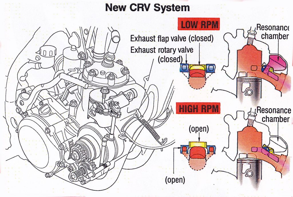 In 1992, Honda replaced their award and title-winning HPP motor with an all-new design that offered easier maintenance and a more aggressive character. The new CRV (Composite Racing Valve) design would power Honda’s 250-class racers into the next decade. Photo Credit Honda