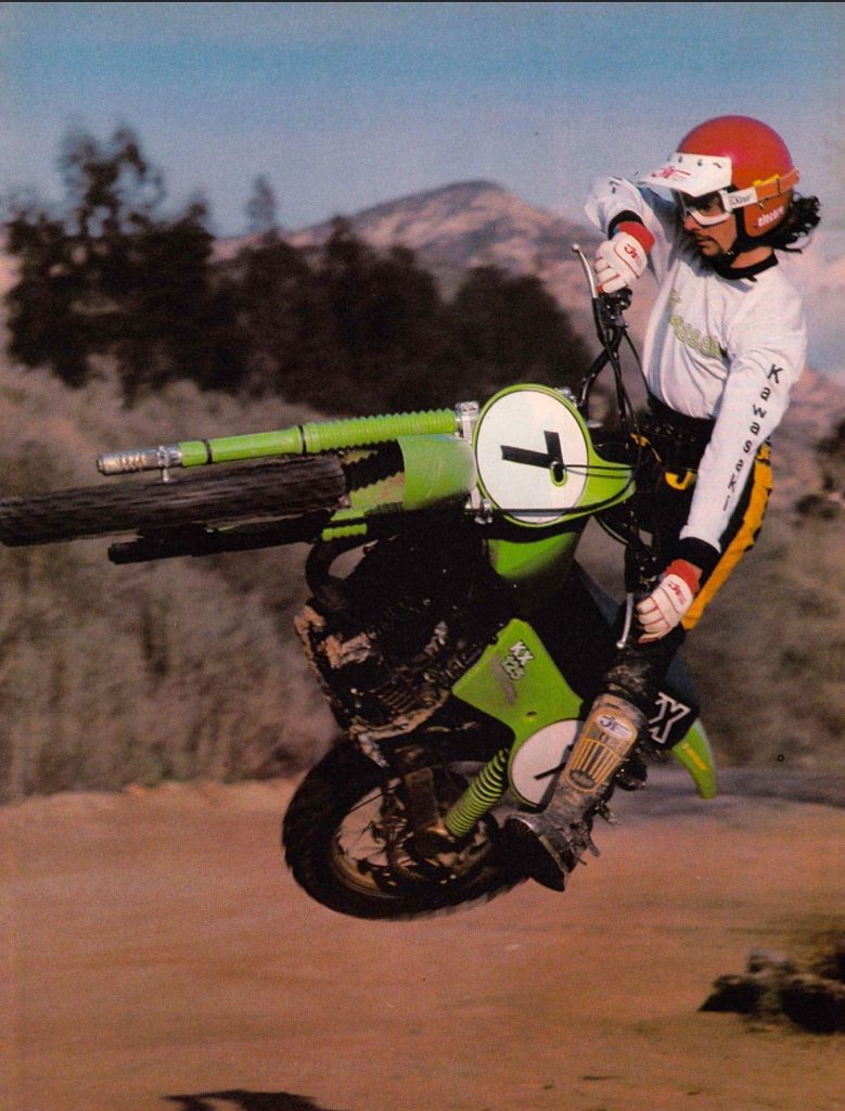 Kermit Krosser: The KX125A-5 was certainly a bold statement in 1979 with its head-to-toe coat of green paint and gold accents. Photo Credit: Cycle World