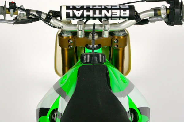 Huffman’s works clamps were super-trick magnesium units and came in several offsets to suit the rider’s preference. Earlier SR’s had used a switch on the left side bar to change ignition curves on the fly. After Emig activated it in a crash and was unable to switch it back, Kawasaki removed the manual switch altogether. |