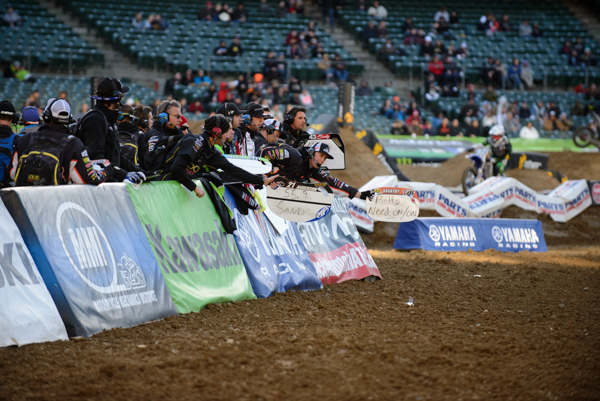 Pit boards in practice- here’s my tip to you riders, if you don’t see yourself on the board out on the track inside the top five-go faster.”Sand” and “Need on/on” written on these boards. So insightful. |