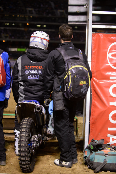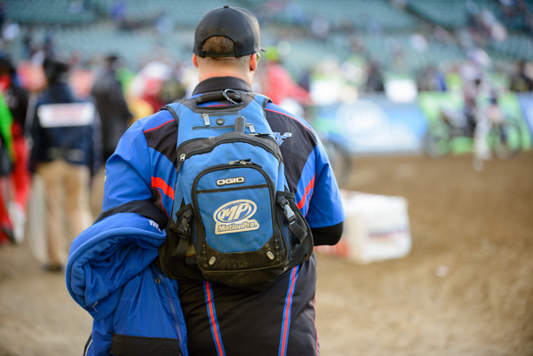 Oh yeah, I’m a big fan of the boots, its nice to prep the gate so your feet doesn’t hurt at the end of the night. It’s a lot easier if you’re rider doesn’t want to help you to make a nice rut and the backpack, that’s a must have. I know Jeremy Albrecht and yourself, both great mechanics used fanny packs but times have changed. Spare goggles, start buttons, rags, all of our tools all fit in there. You’re screwed either way in a supercross but in outdoors, it will work out. For mud races it’s awesome.