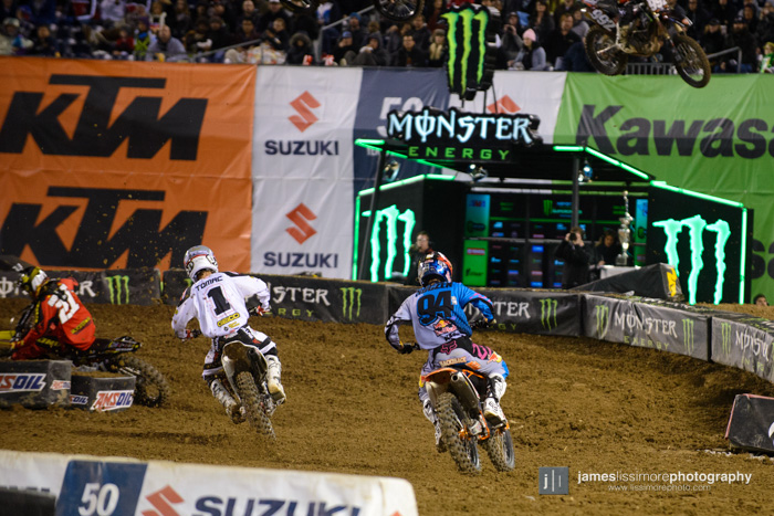 | All the big guys (Reed, RV, Stewart, Dungey) were neck and neck but in 4th thru 7th which was a little weird to see. And they passed each other here and there with no drama. |