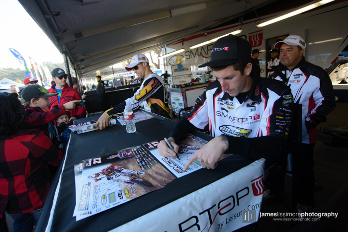 | Jake Canada didn’t race due to lingering effects from his crash a couple of weeks ago while Mike Alessi rode well to a tenth. Tony Alessi keeps a close eye on the signing to make sure Mike’s autograph form is correct. |