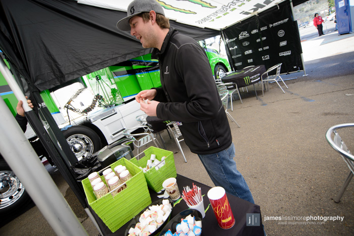 | There are goggle guys and then there is Scott’s John Knowles (seen here getting coffee at Kawi) who is as pasionate as they come. Eli Tomac’s new Oakley goggle broke on the starting line and you know who was all over the situation reporting on the failure. |