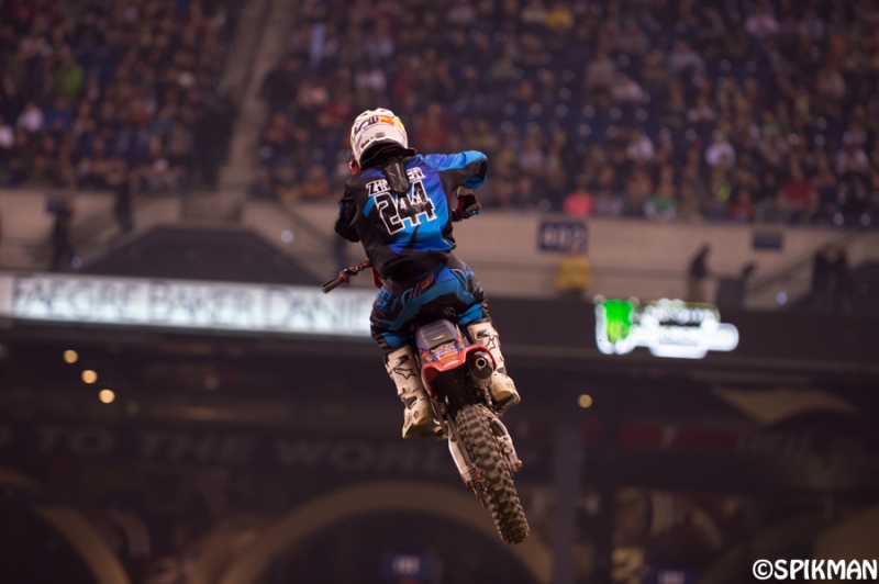 There was no lack of excitement in Indy including the LCQ’s with another Kiniry and Peick showdown. With their speed pretty evenly matched and similar riding styles, demeanor and history of rubbing is racing this season they had my full and undivided attention for the duration of the race. It’s been mentioned a couple times already but I like how Peick continues to race all the way to the checkers although he’s in a qualifying position maybe it’s not the smartest way to approach racing but it shows heart and nobody can question the desire and drive these two guys have. Top Jimmy didn’t get the best of starts and made a push a couple times to catch them but didn’t quite have enough speed or time which is a shame because I’d love to see another boner air over the finish line, a real shocker I’m sure that I find the boner air so humorous.