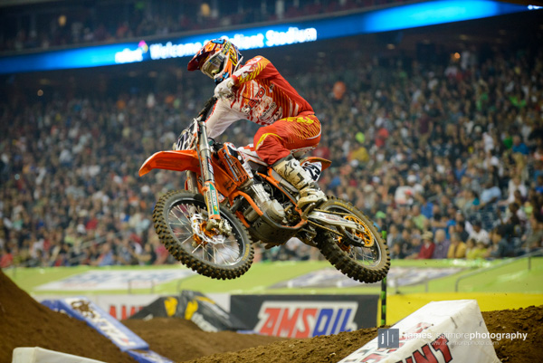 | The BTOSports KTM team debuted some new graphics they’re running at Houston and at Vegas. Why Houston? I don’t know. Pretty cool though. |