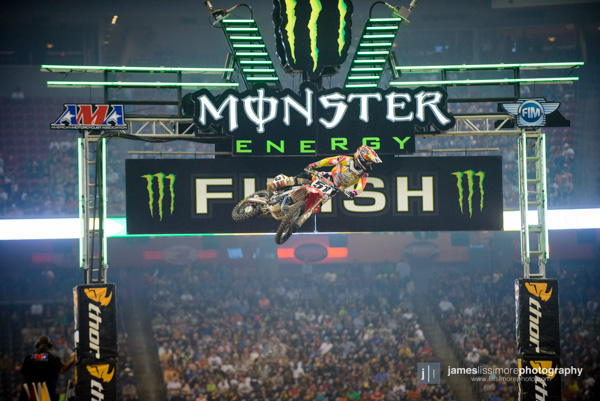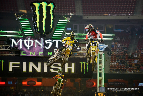 | Mike Alessi grabbed the holeshot in both the heat and the main. And both times the first rider to pass him was Ryan Villopoto. |