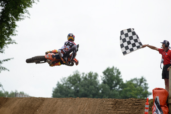 What a day for JS7. Sometimes you need a little luck to turn everything around for you and James took it and ran with it in both motos. Dungey’s mechanical in moto-one moved James up one spot and he rode damn good in moto-two, leading RV for 5 laps before being passed by both RV and Dungey nearly simultaneously. The real excitement came when RV attempted to get a wheel on James when James already had control of the rut just before Larocco’s Leap. There were giant screens on both sides of the track so all of Red Bud got to see the nudge and the crowd just went banana’s when RV got bumped over the banners. Man, we love that kind of racing! It was all fair-game and great to see James look solid all day. He looked better than he has in a while and with a week off, maybe that confidence will lead to more great battles at Washougal?