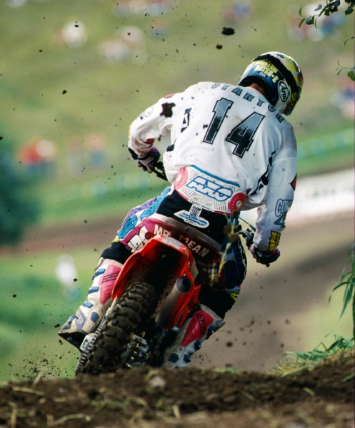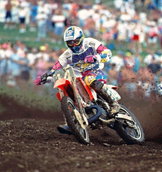 Hi everyone, from the late 80s through the mid 90s I was a contributing photographer for Hi-Torque Publications (MXA and Dirt Bike magazine). The photos that you see here were never published and have been stored as 35mm slides for the last 15-20 years. A month or so ago, I finally got around to purchasing a quality scanner and the journey began, going through these images has been a revelation, as I haven’t looked at any of them since I put them away and had only seen them as tiny little 35mm slides. Scanning them, then seeing the images on a computer screen has been like seeing them for the first time, they stir up lots of great memories, and bring back a great era for motocross, lots of bright color, big characters and of course, some true legends of the sport.I hope you enjoy viewing them as much as I have-Mike Sweeney