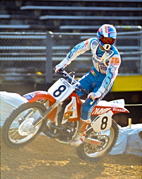 Bayle started out in 1990 and it was his first full-time year in the USA and he wasn’t considered much of a threat. And he started slow before really coming on that year. Lost in the 1990 supercross series was the fact that JMB came very, very close to winning it. He missed one race with injury and that was what did him in. Clearly, the Frenchman had the hang of supercross.