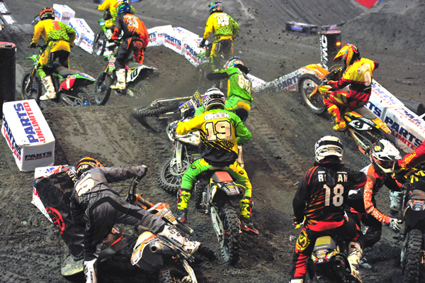 They don’t call it “Arenacrash” for nothing. McDade’s great holeshot disappeared as he went down in the corner after the whoops causing this big pileup.