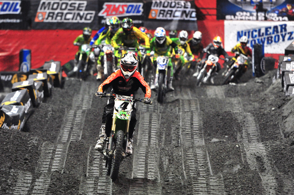 The opening round of the 2014 Arenacross series was held this past weekend in Worcester MA. The track was a typical AX layout which featured dirt that some described as “dirt from the bottom of a pond”. It was definitely damp and clay like.