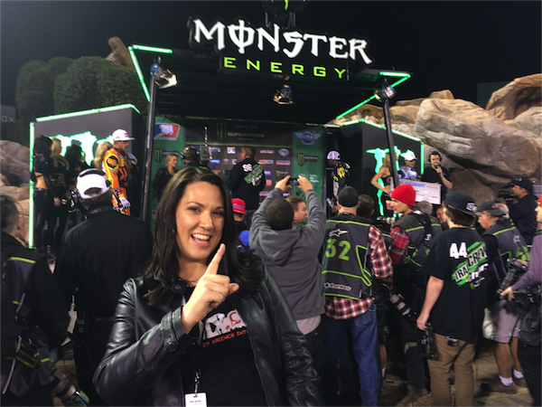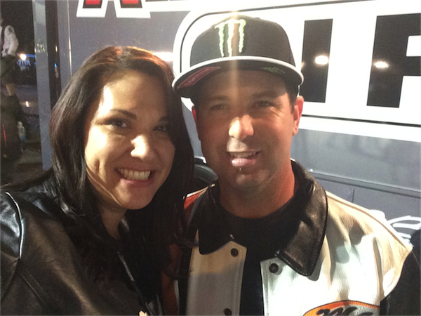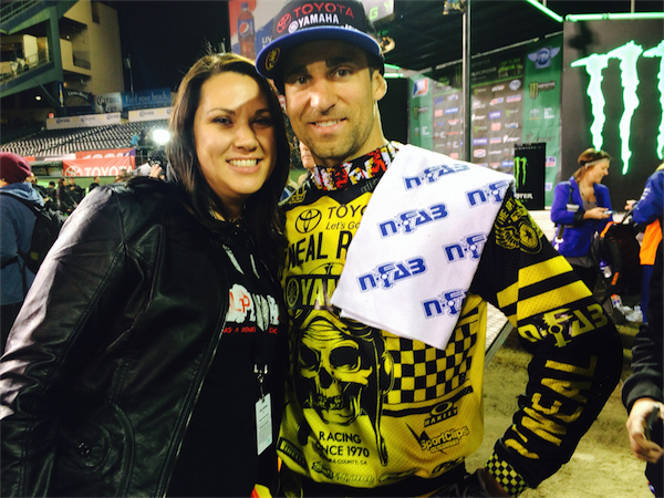 Photo with Jeremy McGrath: Score-15. After the race I was waiting (and waiting and waiting) for Steve to finish his interviews and goggle stuff. And then it happened. There he was at the TwoTwo truck talking to Lars. The King. The KING! The King of Supercross, Jeremy McGrath. I played it cool. Here is our exchange: Me: “Hi, Jeremy. Can I take a picture with you, please?” MC: “Sure.” Me: Oh my gosh thank you so much, I’m Angie.” (snaps selfie) “Oh and can I have a hug too?” MC: “Sure.” Me: (hugs the King) “Thank you, thank you! I love you so much.” Swoon. |