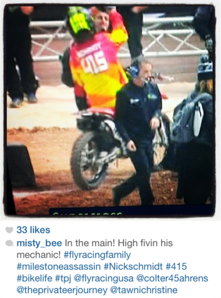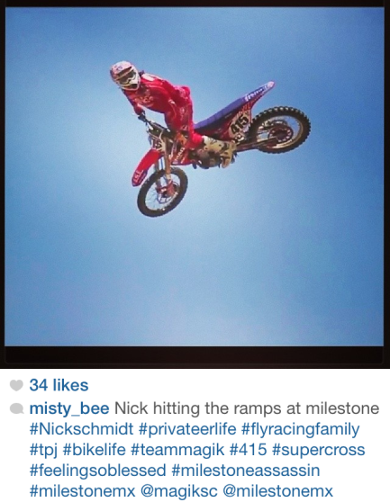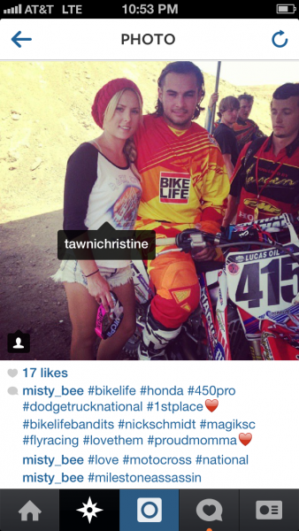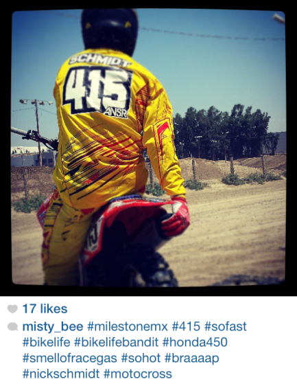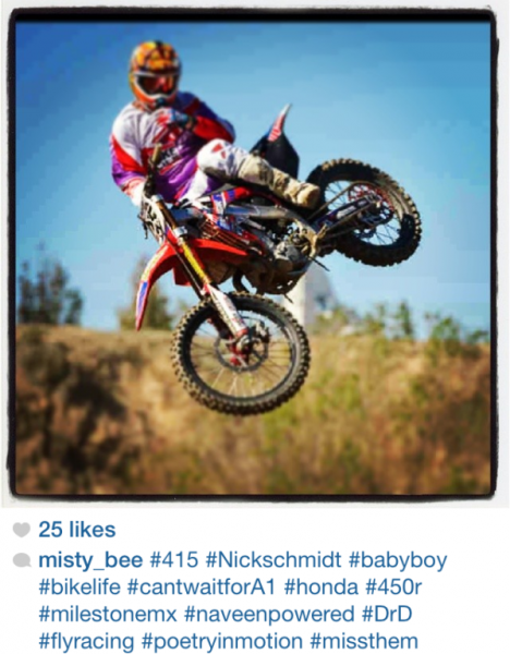There is always that one guy who eff’s up a good thing. Nick Schmidt may have beautiful flowing locks coming out of the back of his helmet but he doesn’t have Instagram or Twitter. Thanks a lot bro, now where am I supposed to steal, I mean “reference” my material from? Thank god for mothers. Like most mothers @misty_bee on Instagram is very proud of her son Nick Schmidt and has posted several pictures of him.