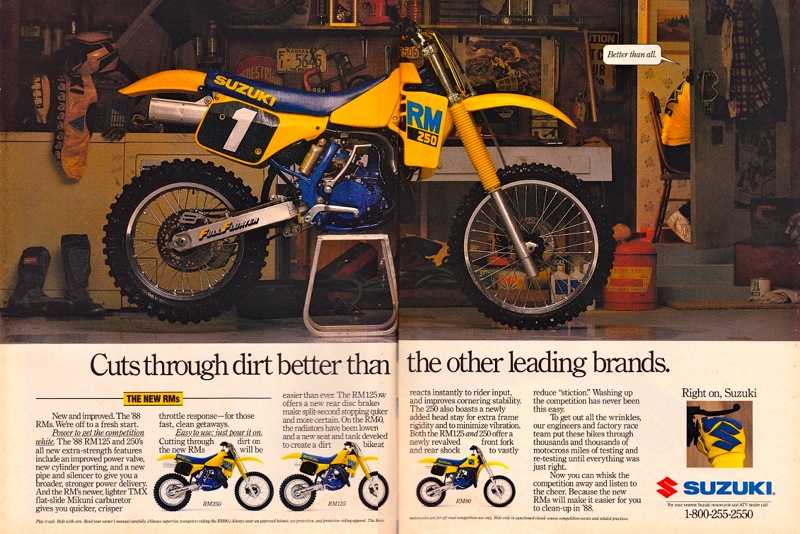With is supple suspension front and rear, the RM was the king of leapers in ’88. |