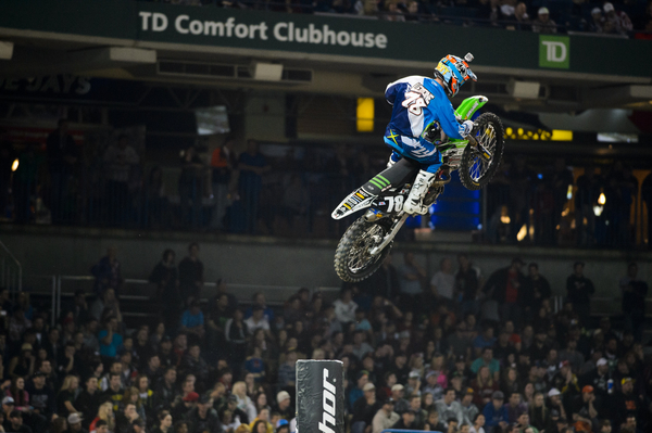 Many races have promised to change the face of the championship, many have shown glimpses of brilliant racing, but none have come through with a dynamic storyline across both classes, until Toronto. Sure, Anaheim 1 had Kenny Roczen, Anaheim 2 had Chad Reed, Indy had Dungey, and Daytona had Ryan Villopoto’s return to dominance, but the real twister was set to hit Toronto straight on. It came in the form of sickness and injuries for the two Championship leading, Kawasaki toting riders with everything on the line. One’s illness could be pushed aside but the other’s injury was just too severe. One left with his points lead in tact, while the other left trailing. It was a night for two riders to forget and a ton of fans to remember.