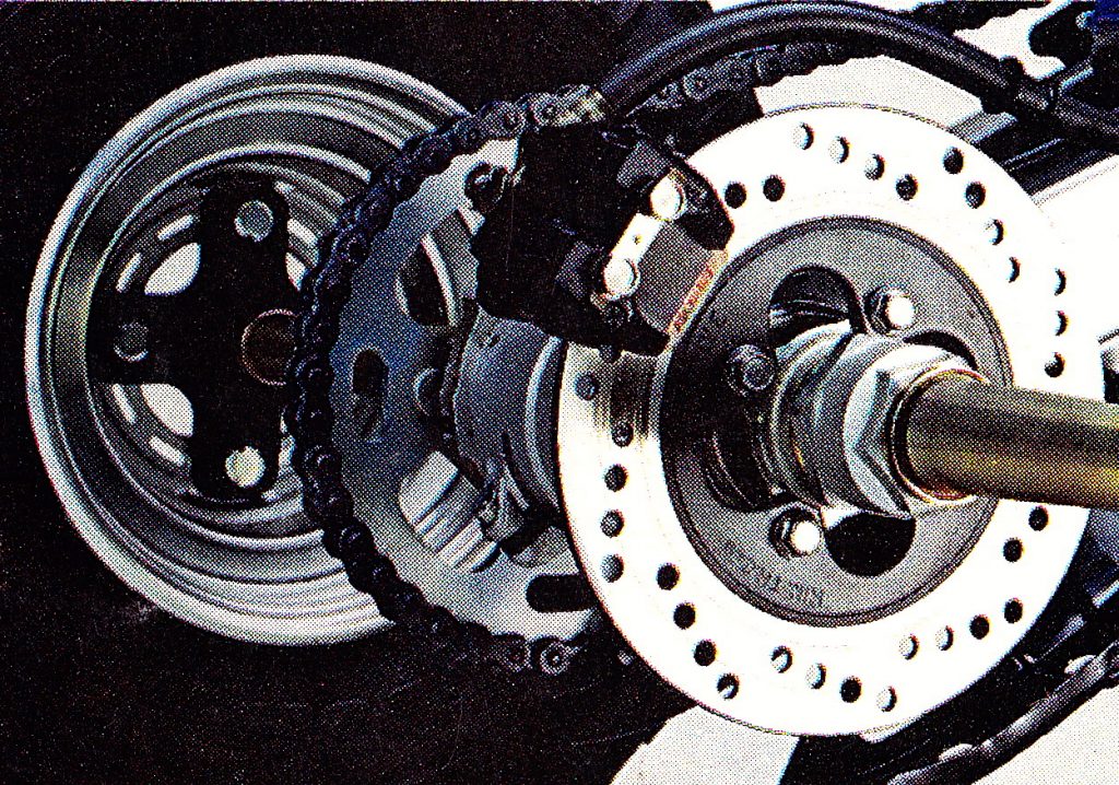 Boat anchor: In addition to its powerful dual front binders, the OW featured a cross-drilled carbon ceramic works Nissin rear disc to slow down the fun.