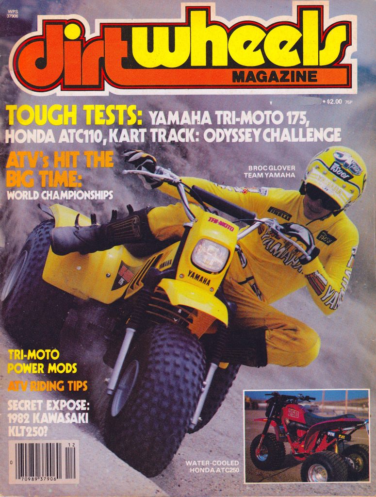 In 1982, Yamaha made big news by announcing that they would finally be making a run at Honda’s omnipotent Factory ATC racing program. The new “Tri-Moto” team would be headed by Bob Oliver and be a no-holds-barred full Factory effort. Perhaps most the most surprising news of all would be the man tapped to race the new machine- Yamaha ace, Broc Glover (Here posing next to the Factory Yamaha POS-83)