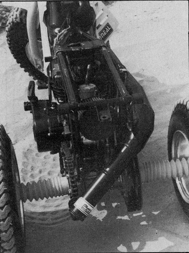 After four of the five Tri-Moto development riders were put in traction, it was decided a redesign of the chassis was necessary. Bob Oliver and his team actually considered turning the cylinder around backward but decided that was a dumb idea that would serve no real purpose, look stupid and screw with the handling. In the end, they settled on relocating the mill nine inches rearward and left the engine facing the correct direction.