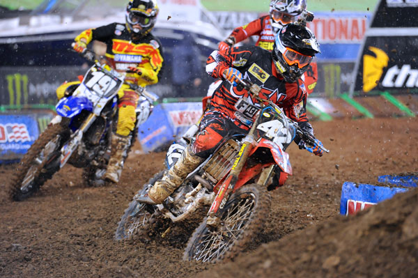 Weird race for you. Kind of a slow start and then all of a sudden you got very angry and you shot forward, and then you made some mistakes, Roczen got back by you, then you got angry again and you pulled away. It was the best battle of the night with you, Dungey, and Roczen. You came up on top and you were on it. Almost got Hill.