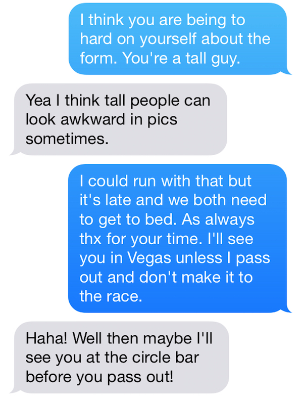 | Come to find out, Chiz is a little self conscious about his form on the bike, but I see nothing to critique here. Looking good! |