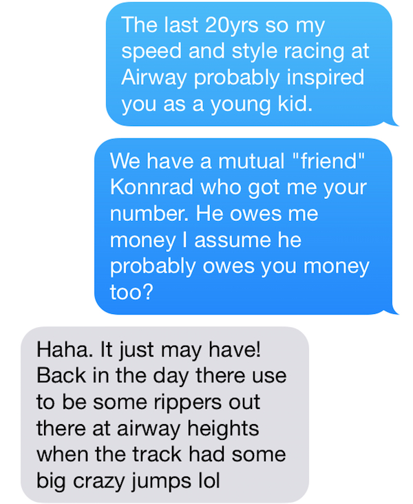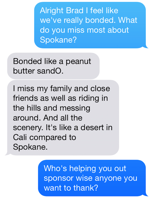 After doing a little cyber stalking, I realized Brad was from the same town as me. Instantly I was intrigued and it didn’t take me long to find someone that knew him and had his phone number. Everyone has that one friend that somehow knows everyone; that friend of mine is Konrad. He’s like my little black moto book full of numbers that are a sure thing and a guaranteed good time. Lets get to know Brad together in this interview: