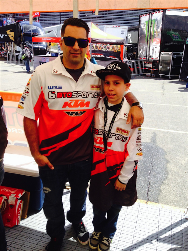 One of the really cool things the BTO team does is allow a few lucky fans to experience being a part of the team for a day. If you are a superfan like me, it really is an amazing experience to be behind the scenes and in the action during the day. Tony Pedone (L) made the trip all the way from Florida to spend the day with his nephew Vincent (R) under the BTO tent. |