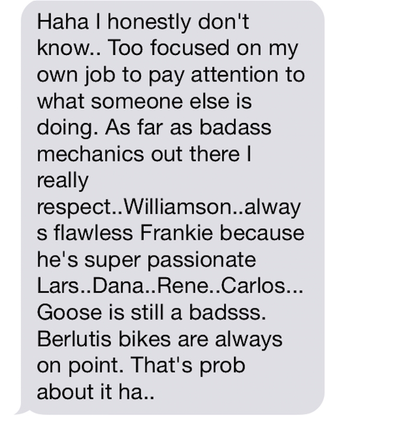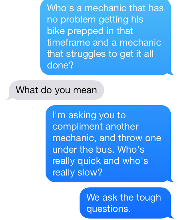 The relationship between a rider and his mechanic is a special bond.