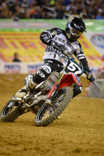 Whoa Canada! Thompson tore his ACL in Houston on the 450 so he missed the last two rounds of the east. Before he went out of the series he was 7th in points (he finished last year 6th in the points as a privateer) and although that’s not bad- he was on Jason Anderson’s Rockstar KTM so the team and bike were dialed in for him. In my opinion Cole is almost too nice of a guy and a bit intimidated by the “big names” of supercross as well as he has a weakness in the whoops. He’s got to get a bit more of a chip on his shoulder and realize that he can do better than just timidly riding around out there. He’s got skills, you can see that- he’s very smooth and seems to be in shape but…just…something…is…missing. The shame of it all is I’m not sure he’ll get a better chance next year once his knee is fixed than he got this year. Lots of people in the pits were wondering why he was on a better bike with a great team and kind of looked the same as he did when it was he and his brother as full privateers. I’m all about a Canadian rider making it in the sport and Thompson’s our best hope. Do it for us Cole…please? |