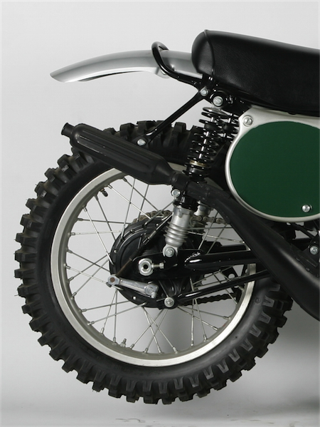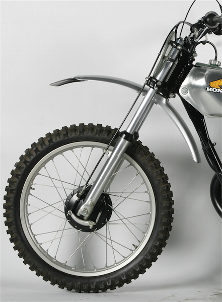 One of the few weak links on the original Elsinore was its mediocre brakes. Even by 1973 standards, these were not great binders. |