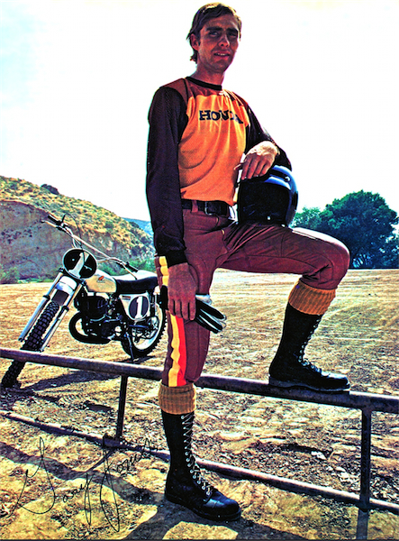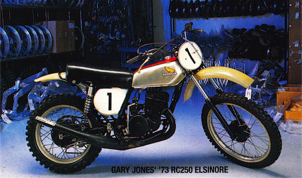 With the introduction of the new Elsinore, Honda knew they wanted to make a splash. They did just that by luring the reigning 250 National Champion, Gary Jones away from Yamaha. Gary would prove to be a wise investment for Honda, taking the new Elsinore to the 1973 250 National title. |