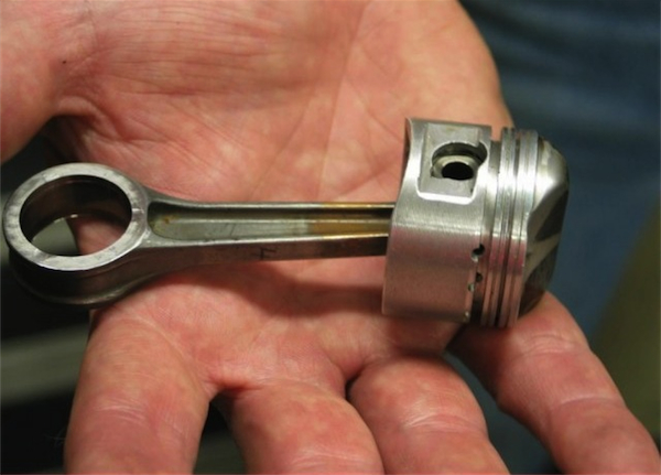 Pocket rocket: Here is a picture of just how tiny the piston and rod were in the incredibly trick RC166. |
