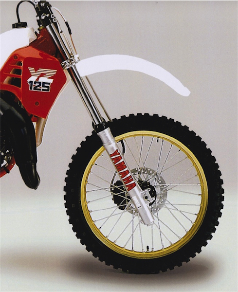 The 43mm KYB’s found on the ’86 YZ offered 12.0 inches of travel and eight available compression damping settings (but no rebound). In spite of their touted “alumite anti-stiction” coating and a big red YAMAHA sticker on the tubes, they offered woeful performance and a punishing ride.