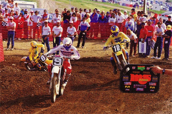 In 1986, Factory Yamaha rider Keith Bowen (#9 pictured, leading A.J. Whiting #10 and Erik Kehoe #8) would take the much improved YZ125 to several top finishes in the Motocross Nationals. “Bones” would card wins at Southwick and Lakewood, before finishing the series in fourth overall.
