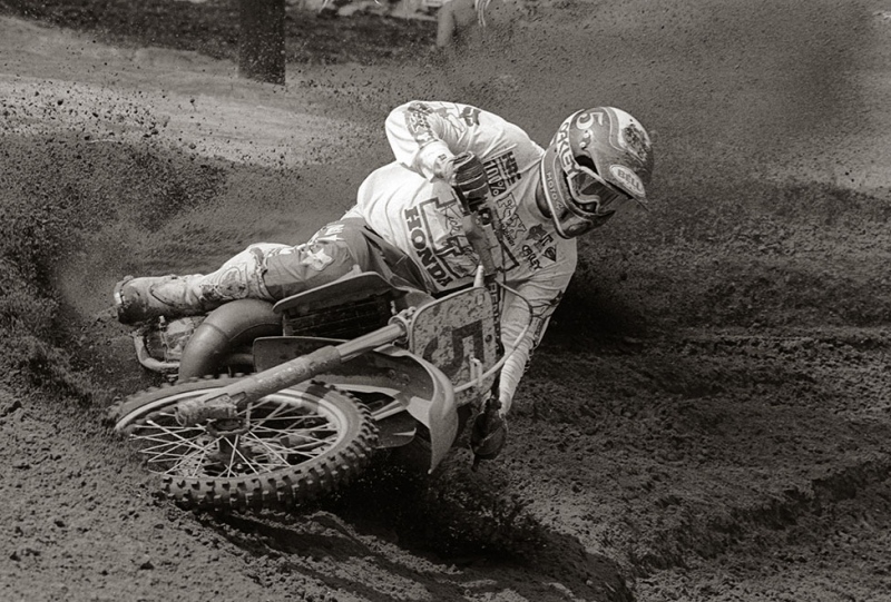 Buckley–“The shot is from the 1986 Southwick national in the Buckley berm. Looking at this photo it’s pretty easy to tell why I’ve shot thousands of photos in this turn. Ricky Johnson would look good in any corner on any track that he raced on but this track was special even a brand-new 125 novice could look good in it. I can’t quite remember if RJ won that year I think he might’ve but there were a lot of fast guys there that day Ron Lechien, David Bailey, Jeff Ward, Doug Dubach, Bob Hannah just to name a few.”